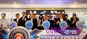 圖說:資策會今(22)日舉辦「UNITE 2015 TAIPEI 暨數位創意成果大賞-台灣遊戲主題館」,特別邀請經濟部沈榮津次長(前排右三)、經濟部工業局吳明機局長(前排右一)、資策會龔仁文副執行長(前排左二)、Unity亞洲區副總裁John Goodale(前排右二)以及國內遊戲產業業者代表共同進行啟動儀式。