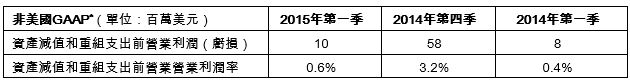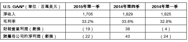 2015年第一季淨收入總計17.1億美元,毛利率為33.2%,每股淨虧損0.03美元。