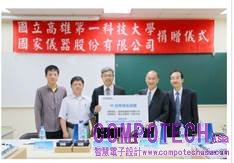 第一科大電資學院院長曾建誠(右二)代表學校接受國家儀器資深業務經理(左三)李乾瑋捐贈兩套軟體系所版