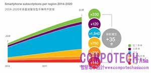 愛立信最新報告中完整呈現了未來的行動趨勢,個人持有終端設備數量的增加將趨動成熟市場的成長。在發展中地區,則因為智慧型手機的價格越趨便宜使新用戶的數量遽增。至2020年底,約有80%新增的智慧型手機用戶是來自亞太、中東和非洲地區。