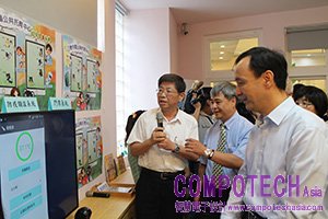 圖說:在經濟部技術處指導下,資策會智通所與精英國際教育集團合作,提供新北市三峽中園公共托育中心「智慧保母」系統平台,輔助幼兒照護;圖為資策會副執行長何寶中(左一)為新北市市長朱立倫說明「智慧保母」系統功能。