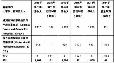 營業部門 (單位:百萬美元) |