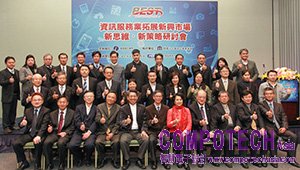 為協助業者充份瞭解並運用政府各項外銷輔導措施,工業局也於啟動儀式後舉辦「資訊服務業拓展新興市場新思 維新策略研討會」,邀請資策會、中華民國資訊軟體協會及台北市電腦公會,說明未來與工業局共同協助業者開拓全球市場之作法。