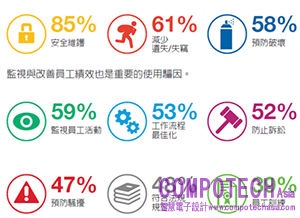 組織大多利用安全監控系統作為加強安全維護的工具,並預估安全監控系統的使用與視訊分析的重要性將年年增加。