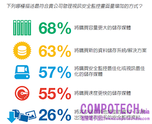 另外,因4K解析度監控攝影機的興起,將使得已然沉重的資料負載更加嚴峻。希捷去年調查發現,2015年對於監控影像資料的相關需求將增加79%,而同年影像監控資料管理等相關問題也將增加60%。