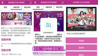 圖說:由資策會智通所與廠商合作開發建置之「Timely電視精靈」APP,將於今年春節期間與電影台業者共同舉辦「新年猴棒棒活動」,提供觀眾於活動時段即時透過APP、參加廣告打卡、回答問題,及時參與第二螢互動遊戲拿獎品的跨螢服務新體驗。