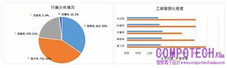 為期三個月的第一階段調查,以電子、製造及金屬為主要行業,透過21個題項填答,了解受測企業分別在「產業智慧化、管理自動化、設備自動化、工廠智慧化」各標準的程度比例,並分為不同的成熟度等級;目前整體評測的等級數據以「打底」佔55%為最,其次為「精進」佔43%,最後才是「智慧」等級僅佔2%。