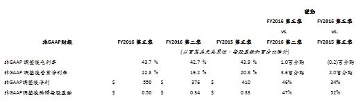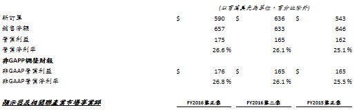 GAAP及非GAAP調整細節解釋詳見後附之財務調節表。亦請見下列的「非GAAP調整後財務方法之運用」。