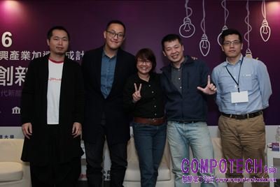 圖說:資策會今(6)日舉辦「2016 跨界創新沙龍」分享會,邀請新興產業加速育成計畫優秀新創團隊創辦人及團隊蒞臨分享,圖為貴賓會後合影,左起為:飛搜創辦人林修平、Addweup創辦人鄧培志、資策會產推處副處長洪雯娟、鐘點大師創辦人姚長安、禾力科技創辦人蔡耀仁。