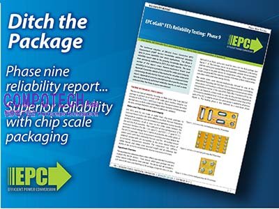 2017年4月13日—宜普電源轉換公司發佈第九階段可靠性測試報告,記錄受測元件在累計超過900萬個元件-小時的應力測試後,沒有發生故障。該報告聚焦電路板熱機械可靠性,首次描述焊點的完整性的預測模型,以及與可比的封裝元件相比,展示出採用晶圓級晶片尺寸封裝(WLCSP)的氮化鎵電晶體具備卓越的可靠性。