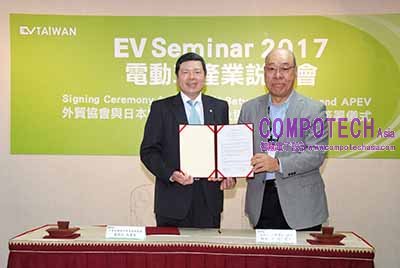 2017年4月24日--為了強化臺灣與日本雙方電動車業者合作關係,外貿協會與日本電氣自動車普及協會(APEV)於4月21日,「2017年台灣國際電動車展」展覽期間簽訂合作備忘錄(MOU)。外貿協會秘書長葉明水表示,APEV致力於串連汽車製造、售後市場、零組件、通訊技術、財務機構、私募基金、政府與研究機構等業者,共同推廣電動車產業。會員遍布海內外,包括Hitachi、Nissan、Sumitomo Mitsui Auto、Suzuki、Toyota等日本知名企業,海外會員也包括芬蘭Nokia、德國BMW、Volkswagen及美國Tesla。