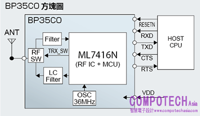 「BP35C0」是外接天線的小型表面安裝Wi-SUN模組,其配備有業界頂級收訊感度、適合運用在920MHz頻寬的無線通訊功能(RF)和微控制器、Wi-SUN,且內建大容量記憶體的LAPIS Semiconductor製無線通訊LSI「ML7416N」。