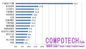 而且有趣的是,即使「教育學習類」與「旅遊類型」的App,皆非消費者經常使用項目,但卻擠進了消費者願意提升花費的第5、6名,由此可見,國人對於提升自我學習、親子教育及旅遊等議題相當關注,且會願意支出其相關花費,建議新創團隊可掌握此趨勢、開發相關軟體搶攻華文市場商機。
