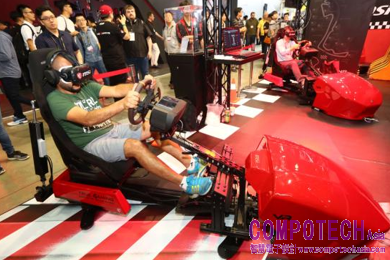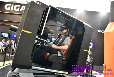 微星科技則將展場分區,除了展示電競筆電、主機板、桌機與電競週邊產品等各項產品線,更將大型VR機台搬進展場,不僅可體驗一般常見的賽車遊戲,還能現場親測VR雲霄飛車帶來的刺激感受。技嘉科技亦展出一台720°VR體感模擬器,利用飛行模擬艙搭配VR眼鏡,提供玩家身臨其境的飛航體驗。