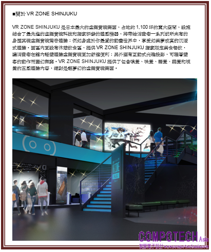 2017年6月13日--全球智慧型手機與虛擬實境創新設計領導者HTC (宏達國際電子股份有限公司,以下簡稱『HTC』),今(13)日宣布與日本遊戲領導者萬代南夢宮娛樂(Bandai Namco Entertainment,以下簡稱『萬代南夢宮娛樂』)、共同合作推出日本占地最大的虛擬實境樂園VR ZONE SHINJUKU,預定將於2017年7月14日在東京新宿正式營運,VIVE團隊將提供所有的Vive設備及虛擬實境體驗開發方面的技術支援。