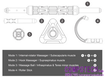 RC RELEASE 的「四合一功能」模組式分件設計可針對不同部位進行深層按摩,除了囊括現有運動按摩產品的功能,特別主打從事上肢訓練時好發傷害的「肩關節旋轉肌群Rotator Cuff」,Rotator Cuff一共有四條肌肉,每一條都是提供上肢活動舉足輕重的要角。故如何設計出能夠觸及並充分按摩旋轉肌群的產品構造,便是RC RELEASE在開發過程中極力克服與欲達成之處。