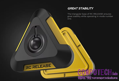 三角形特色底座,為RC RELEASE的重點設計。可收附之球關節提供大角度的活動範圍;高止滑異材質確保使用者絕佳的安全與穩定。