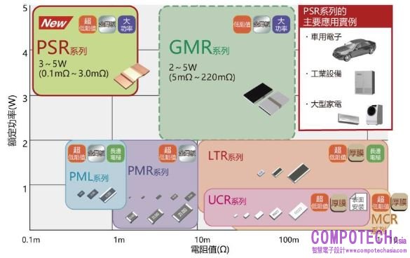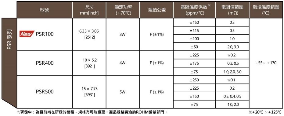 分流電阻主要用來檢測大功率應用裝置的電流,廣泛使用在車用電子和工業設備上。伴隨著電動車的開發風潮,車用小型馬達和ECU的搭載數量與日俱增,對於小型大功率分流電阻的需求也愈來愈高。ROHM在分流電阻領域一直擁有傲人成績,本次再度推出以大功率、超低阻值為特色的「PSR100 系列」。