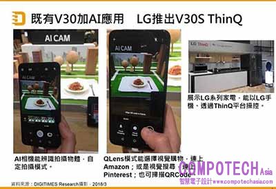 2018年3月13日--綜觀2018年MWC (Mobile World Conference)各大手機廠的表現,韓廠主打雙光圈或大光圈鏡頭,搭配軟體演算來提升照片品質,如三星(Samsung)推出配備雙光圈鏡頭Galaxy S9系列,LG則以舊有機款V30,增加AI應用,推出V30S ThinQ,透過軟體辨識拍攝物體,提供使用者最佳拍攝模式。日廠如Sony則強調音質呈現,以3款不同功能的耳機搭配XZ2系列展出。陸廠如TCL、中興則把所有中低價位機種全轉換為18:9全螢幕。