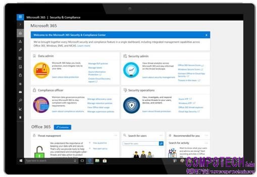 五、內建合規性:對大型組織而言,管理合規性是非常複雜與艱鉅的任務。Microsoft 365內建不斷更新的功能,有助於處理檔案的歸檔、保留、分類等,也將降低執行合規性流程的複雜度。Microsoft 365的安全性和合規中心集Azure Active Directory、Exchange、SharePoint、Teams於一身,允許透過雲端服務讓你匯入資料進行保留以及內容搜尋。功能包括: