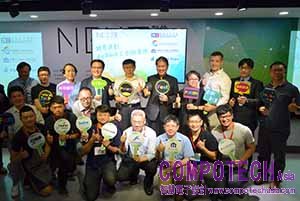 圖說:今(29)日DigiBlock C創新基地啟動,圖為資策會蕭博仁副執行長(後排左4)、台北市長柯文哲(後排左5)、經濟部工業局電資組呂正欽副組長(後排右5)與貴賓及參展團隊合影留念。