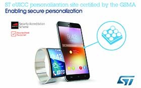 在現有製造符合GSMA安全性和可靠性規範的eSIM晶片認證基礎上,意法半導體依照GSMA的UICC生產安全認證計畫(GSMA SAS-UP),領先其他晶片製造商獲得eSIM個人化資料安全應用證書。