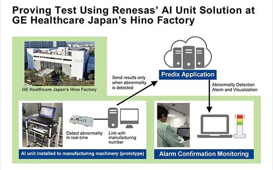 瑞薩電子工業自動化事業部長傳田 明(Akira Denda)則指出:「我們已在那珂(Naka)工廠的半導體蝕刻製程線上,採用了AI Unit解決方案,並已在化學處理過程的異常偵測和預測性維護上獲得成效。在與GE Healthcare Japan日野工廠的合作中,我們在具有機械動作的生產機器上進行了驗證測試,證明確實可偵測到產品不良的發生,並能與GE的工業物聯網平台Predix建立聯繫,這些都是重要的成果。未來,我們希望能繼續推動各種類型的e-AI解決方案,實現在全球製造基地的普及化,以協助客戶提高產能。」
