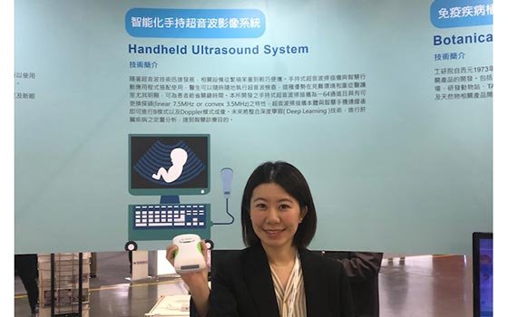 隨著全球人口高齡化帶來的老化與慢性病醫療照護需求提升,驅動相關市場持續成長,其中,醫用超音波、數位X光與核磁共振等高階影像醫材,占全球影像醫材市場六成以上。以往超音波檢測設備不但笨重且只能放置在醫療檢驗所中,增加了檢測限制。工研院研發的「智能化手持超音波影像系統」,打破傳統重量的限制,400g完全輕量可攜,具64通道、且可更換不同頻率的探頭,與智慧手機連線後即可進行模式成像,讓醫護人員可隨時隨地進行檢查,除廣泛應用在內科、婦產科、復健科,在偏鄉與重症醫護室更能在關鍵時刻發揮最佳功效,未來將整合深度學習技術,進行肝臟疾病之定量分析,邁進智慧診療領域。