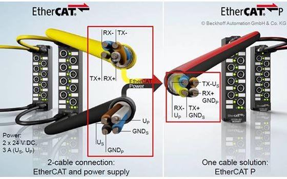 整合EtherCAT通訊和電源於單一電纜的EtherCAT P標準