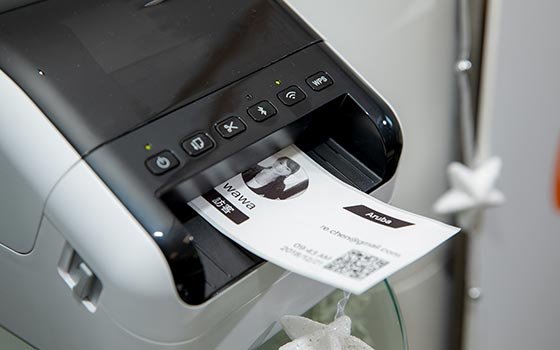 圖二:HPE Aruba於今日(21日)媒體茶敘上展示智慧接待方案。臨時識別證可透過訪客照片及QR Code整合門禁及人臉辨識功能,讓訪客門禁、網路授權與權限管理一次到位。