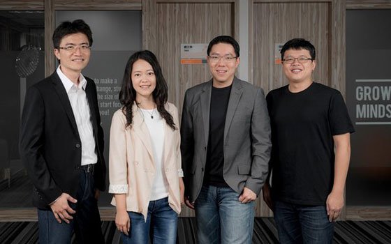 iKala 共同創辦人由左至右:營運長鄭鎧尹、財務兼人資長許茹嘉、執行長程世嘉以及技術長龔師賢