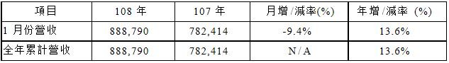 創意電子股份有限公司(股票代碼:3443) 今(11)日公佈2019年1月份營業額為新台幣8 億 8 仟 9 佰萬元。與上個月份營業額比較,減少 9.4%。與2018年同期營業額比較,增加13.6%。