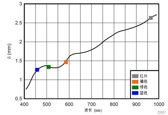 圖1:顯示一系列不同波長光源的光學穿透深度(δ)