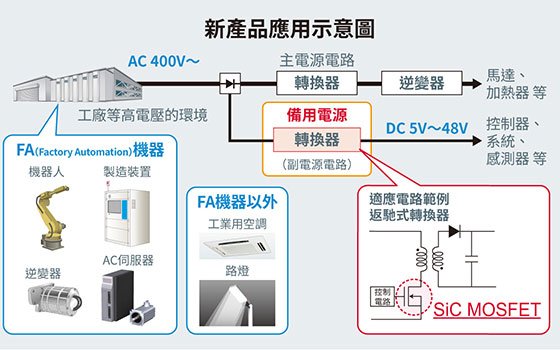 近年來隨著節能意識的提高,在交流400V工控裝置領域,與現有的Si功率半導體相比,可支援更高電壓、更節能、更小型化的SiC功率半導體的應用越來越廣泛。另一方面,在工控裝置中除了主電源電路之外,還內建為各種控制系統提供電源電壓的輔助電源,輔助電源中廣泛採用了耐壓較低的Si-MOSFET和損耗較大的IGBT,在節能方面存在著很大的課題。