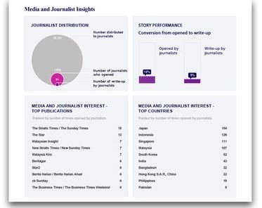 全新的報告工具運用 Media OutReach 的專屬發佈網絡、追蹤和報告技術,以及亞太區 22 個國家共 80,000 多名記者的資料庫。這種定性評估工具在公關行業是前所未見的,而且解決了其中一個最具挑戰性的問題 ── 了解媒體如何使用已發出的新聞稿。評估結果讓公關專業人士準確了解哪些媒體對他們的新聞感興趣。這些資訊有助公關專業人士了解他們的目標媒體,並有助制訂策略性傳播計劃。他們能了解不同國家媒體的興趣,這對於負責特定地區的公關專業人士尤為重要。