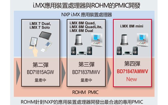 ROHM 一直致力於開發適合 NXP 公司 i.MX 8M 系列的 PMIC,並於 2018 年推出適用「i.MX 8M Quad/Dual」的 PMIC「BD71837MWV」。此次再度針對採用先進製程且具有優異節能性的「i.MX 8M Mini 系列」,推出新的 PMIC「BD71847AMWV」。