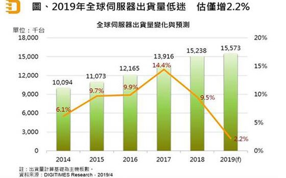 2019年全球伺服器出貨將陷低迷,儘管個別客戶需求量可望有1成以上幅度增長,但整體全年成長率仍可能創下2014年以來新低。