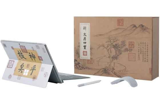 2019年5月22日--以創新為王道的資訊時代中,透過跨領域碰撞激起火花是脫穎而出的關鍵,因此微軟Surface自6年前在台開賣以來,不斷更新及完善產品線,提供消費者無可比擬的生產力,並創造耳目一新的使用者體驗。微軟於今(22)日宣布攜手故宮精品,共同推出聯名筆電套裝「新文房四寶」,一次購足Surface Pro 6本機、實體鍵盤保護蓋、Surface Arc Mouse滑鼠和Surface手寫筆,搭配王羲之的墨寶《快雪時晴帖》作為產品包裝,以古典美學為科技生活加溫,再度展現科技與古典的巧妙結合。現場更邀請知名跨界藝人謝哲青及陳妤出席,分享使用Surface Pro 6的生活故事和其於忙碌、斜槓的現代生活中扮演之角色。限量1,000組的Surface Pro 6故宮聯名精品款即日起開始預購,並於6月1日正式開賣。