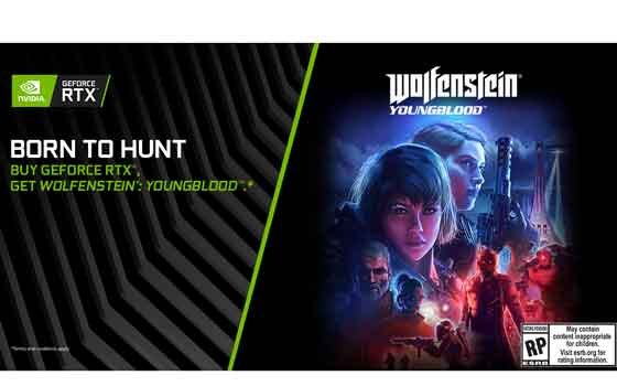 為了慶祝《德軍總部》系列重返市場,即日起 NVIDIA 針對 GeForce RTX™ 顯示晶片(GPU) 推出為狩獵而生(Born to Hunt)遊戲同捆包。在限定期間內購買 GeForce RTX 2080 Ti、2080、2070 或 2060 GPU,或搭載前述型號 GPU 的桌上型電腦或筆電,即可獲得預計將於 7 月 26 日上市的《Wolfenstein: Youngblood》遊戲。