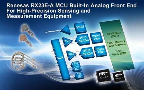 2019年5月28日--先進半導體解決方案頂尖供應商瑞薩電子(TSE:6723)今天推出了32位元RX微控制器(MCU)的RX23E-A產品家族,將高精確度的類比前端(AFE)和MCU結合在單一晶片上。RX23E-A MCU專為製造測試和量測設備應用產品而設計,這些設備要求高精確度的類比訊號量測,用來測量溫度、壓力、重量和流量。RX23E-A MCU是瑞薩第一款在無校正下,就能夠提供優於0.1%精確度來測量此類訊號的解決方案。