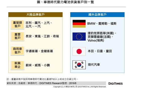 林芬卉表示,新能源車是大陸中長期發展的重點產業之一,2020年該區仍將為全球第一大市場。大陸車企為確保符合規格的電池供應來源,部分業者與寧德時代簽訂供貨合約,或更進一步與其成立合資公司,無論是寧德時代全資廠或合資廠,於2019年(含)以後皆有擴產及投產計畫。另,寧德時代已打入國際車廠客戶,朝海外市場擴展,並以歐系業者為主,在2018年即於德國投資首座海外電池工廠。
