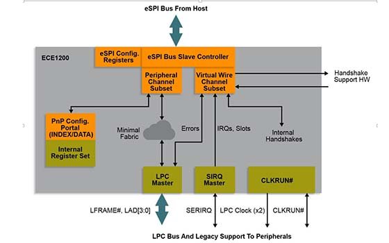 ECE1200 eSPI-to-LPC橋接器允許開發者維持生命週期的同時,支援採用新一代晶片組和CPU的新計算應用所需的eSPI匯流排技術。為降低開發人員的風險,eSPI匯流排技術經過工業計算應用的強力驗證,並已與領先的處理器公司進行了共同驗證。ECE1200專為滿足當今的eSPI要求而設計,可檢測並支持具有低待機電流的現代待機模式。 這有助於工業計算開發人員有效管理營運成本和效率,同時保有終端使用者對新設備的期望。 ECE1200易於實施,且無需任何軟體。