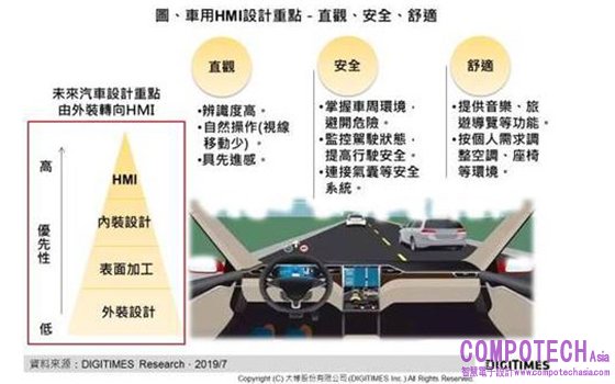 根據DIGITIMES Research分析師林芬卉觀察,在自動化與連網技術提升下,車用人機介面(Human Machine Interface;HMI)與內裝朝向智慧化與個人化發展,人機介面以整合化及多重互動模式為趨勢,內裝採多用途空間設計,未來駕駛艙將成為人機互動的平台,每個汽車內裝裝置都能隨不同乘員需求調整,促使汽車零件廠間深化合作關係。