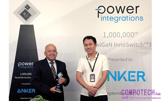 2019 年 9月30日--Power Integrations (Nasdaq:POWI) 是節能型電源轉換領域的高壓積體電路領導廠商,今日宣佈推出其第壹百萬顆 InnoSwitch™3 切換開關 IC,該產品採用了公司的 PowiGaN™ 氮化鎵技術。在 Anker Innovations 深圳總部的一次活動中,Power Integrations 執行長 Balu Balakrishnan 向 Anker 執行長 Steven Yang 展示了第壹百萬顆基於 GaN 的 切換開關IC。Anker 是充電器和轉換器的領先製造商,為全球零售商提供了功能強大的小型 USB PD 轉換器,以及適用於膝上型電腦、智慧型行動裝置、機上盒、顯示器、家電、網路設備和遊戲產品的各種充電器和轉換器。