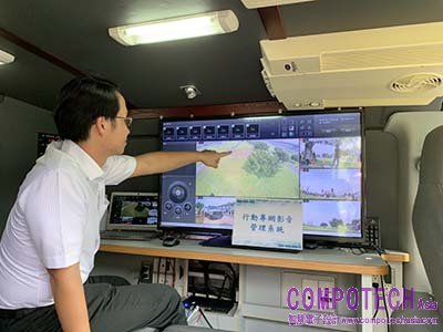 圖說1:為提升新北市政府「Pokémon GO Safari Zone」活動維安效率,工研院與新北市警察局打造無人機行動專網中心,圖為行動專網影音指揮車,可輔助警力佈署提升維安效率。