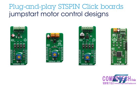 意法半導體的STSPIN IC在極小的封裝內整合先進的控制功能、受保護的輸出級和無耗散功耗的過流保護等安全功能,可以簡化馬達控制設計。該馬達驅動器安裝在新款隨插即用的Click板上,而無需任何硬體設定即可使用。此外,意法半導體亦積極支援MikroSDK軟體庫和代碼範例以協助啟動專案,與MikroElektronika合作所提供之高性能的軟體,讓使用者能從各板子中獲得最大優勢。