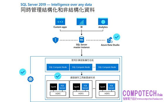 圖一:微軟SQL Server 2019同時管理結構性與非結構性資料,更加快速、彈性部署。