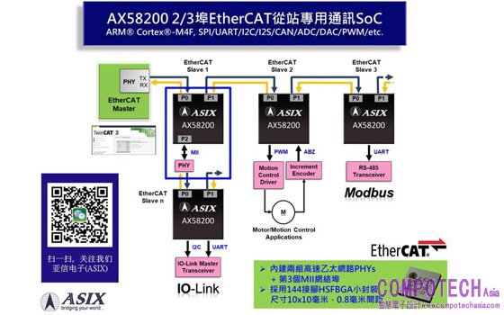 (圖一)亞信新一代小封裝EtherCAT從站專用通訊SoC - AX58200