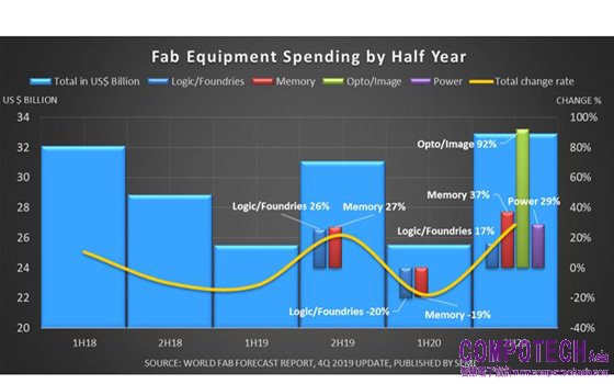 SEMI 同時修正2020年晶圓設備投資預測,總金額上修至580億美元,整體市場轉趨樂觀。
